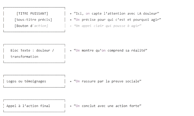 On conçoit un tunnel élégant, clair et intuitif 100% responsive mobile ! Chaque section est pensée pour générer de la confiance et guider vers l’action précise souhaitée. Le design accompagne la vente.